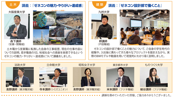 各大学とも、日建協加盟組合から派遣された講師による講義の前に、日建連より2025年に発表された『建設業の長期ビジョン2.0』についてのご説明を頂きました。