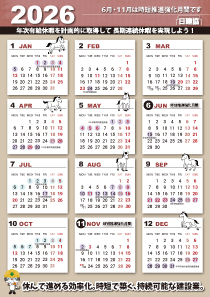 2025年12月23日 / Last updated : 2025年12月23日 nikkenkyo カレンダー・壁紙時短・働き方改革最近の発刊物2026年 年間休日カレンダーができました!日建協 年間休日カレンダーができました。 ダウンロードしてご活用ください。関連記事2025年11月 4週8閉所ステップアップ運動ポスター2024時短アンケートダイジェスト発刊2025年 年間休日カレンダーができました!時間外労働の上限規制Q&A リーフレット発刊!2024年 年間休日カレンダーができました!2022年 年間休日カレンダーができました!2021年カレンダーと壁紙ができました!2019年カレンダーと壁紙ができました!