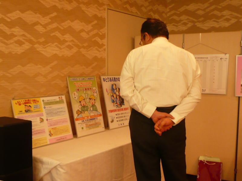 昨年東北ブロックの6労働局にて、「仕事と生活の調和キャンペーン」が展開され、そのなかで「統一土曜閉所運動」のポスターが展示・紹介されました。今年も宮城労働局主催の「仕事と生活の調和のとれた働き方の普及促進に関するシンポジウムin仙台」の会場にポスター展・好事例の配布・相談コーナーの設置等が行われました。そしてポスター展で「統一土曜閉所運動」のポスターが展示されました。このような会場で展示されることは「統一土曜閉所運動」が産業全体の運動となる礎になるため、今後もあらゆる方面に働きかけを行っていきます。 |