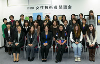 今回の「日建協 女性技術者懇談会」は、前回2007年12月に開催して以来、2年ぶりの開催となります。日建協加盟組合からの参加者16名に加え、建設産労懇の仲間である長谷工グループ労組からも4名の参加者を交え、合計20名の女性技術者に集まっていただきました。外部からは、内閣府の仕事と生活の調和推進室、男女共同参画局からも2名ご臨席いただきました。また、出前講座を開催している東洋大学から、准教授と学生2名、そして2年前の懇談会に当時学生として参加し、現在も現場で活躍している卒業生1名も参加しました。